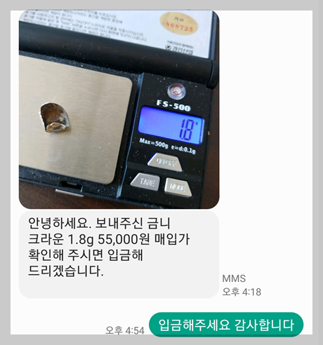 다른 곳에서도 금니 매입을 하는 것 같은데 제가 직접 통화를 해보고 돈을 입금 받아보니 금니메이트는 믿을 만한 것 같아서 이렇게 후기를 올립니다.