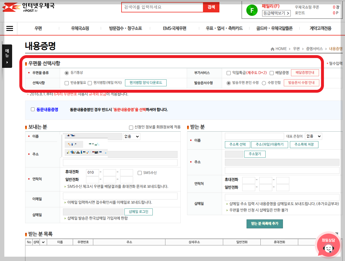 우체국까지 가기 힘든 상황일 경우 인터넷으로 내용증명을 보내면 시간을 절약할 수 있습니다.