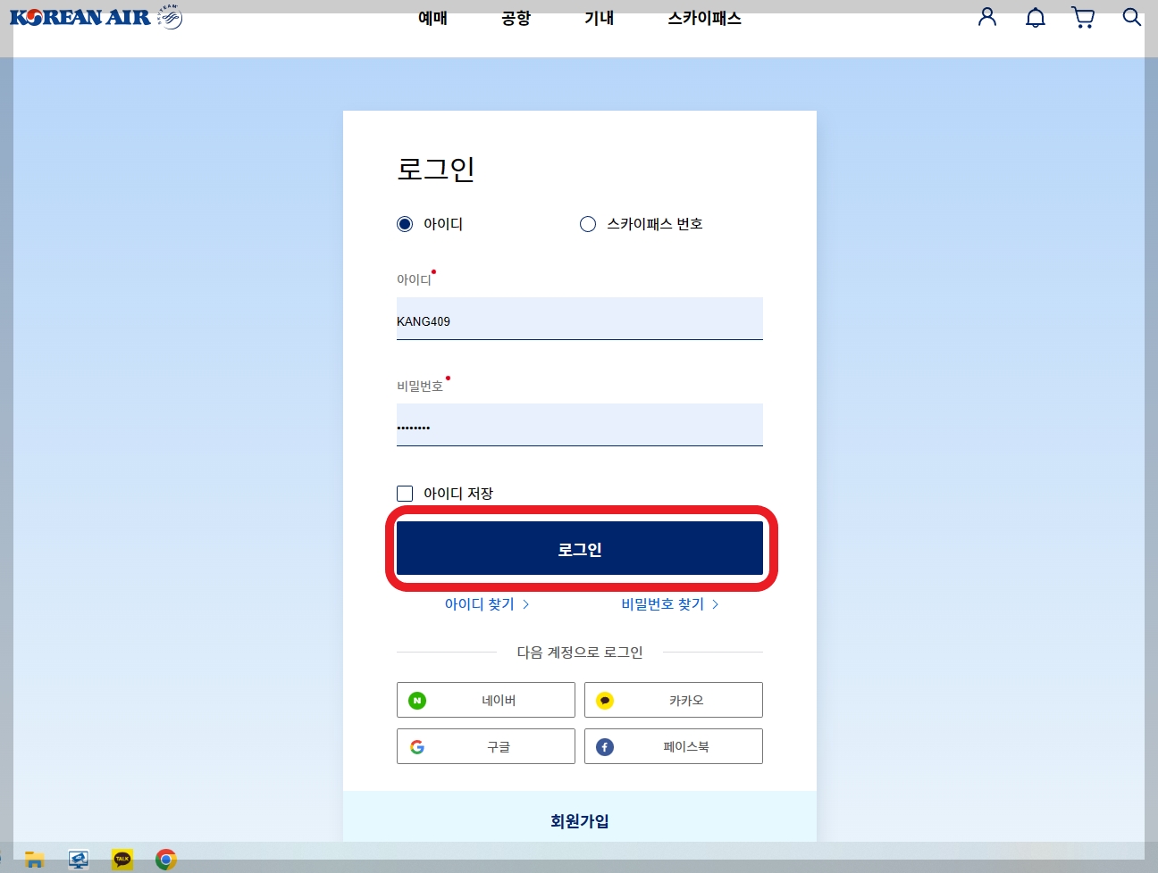 먼저 검색창에 대항항공을 치고 대한항공 홈페이지로 들어간 후 로그인을 합니다.