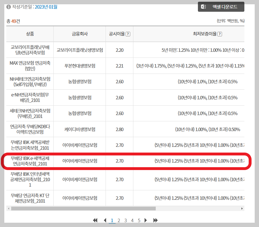 6. 여러 연금저축보험 상품을 금융감독원 통합연금포털에서 비교해 볼 수 있습니다.