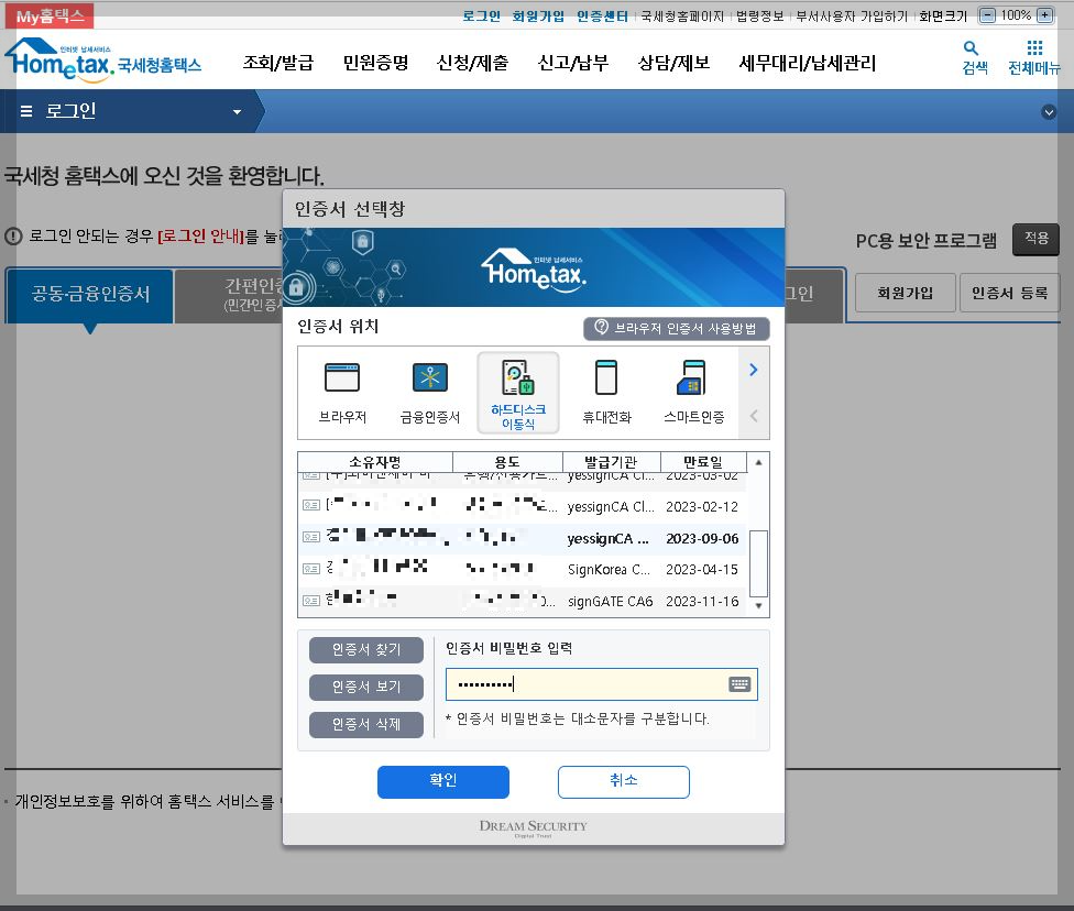 국세청 홈택스 로그인