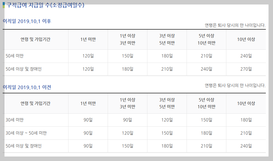 - 구직급여는 퇴직 당시 연령과 고용보험 가입 기간에 따라서 짧게는 120일에서 길게는 270일 범위 내에서 퇴직 전 평균 임금의 60%를 받을 수 있습니다.