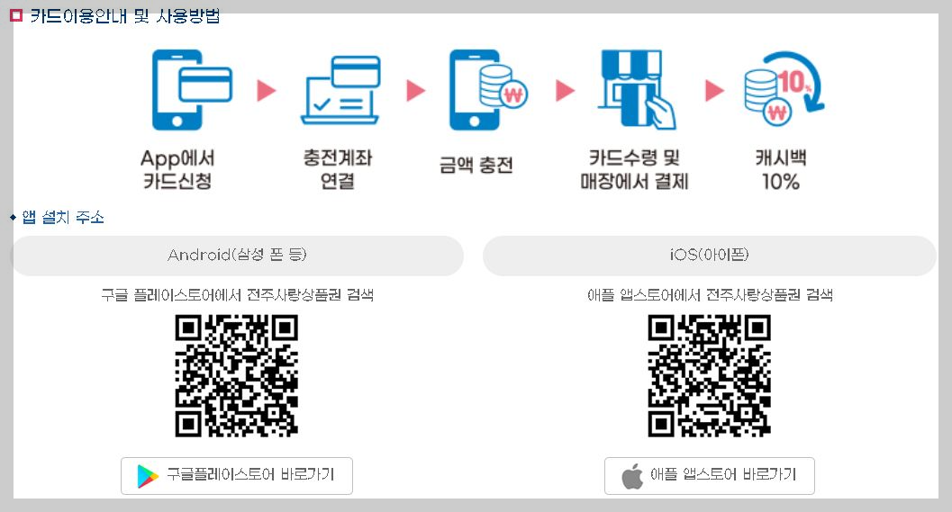신청방법 : (온라인신청) 전주사랑 상품권 앱 설치 후 신청(카드 수령까지 2~3일 소요)