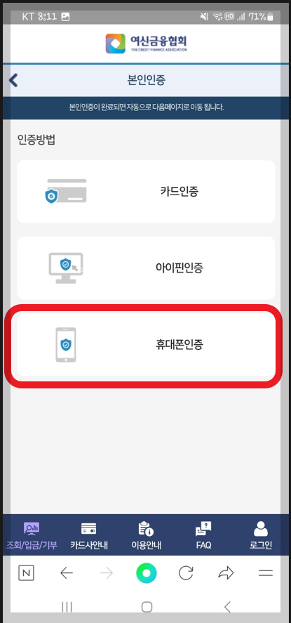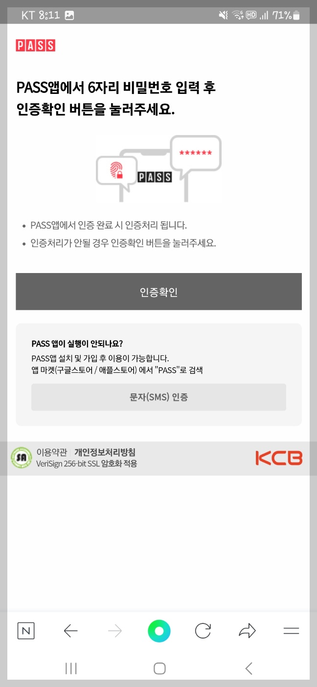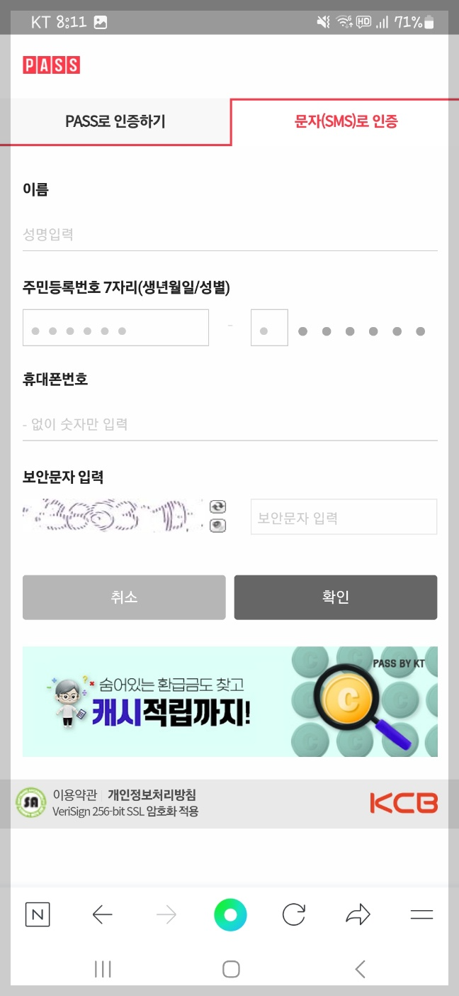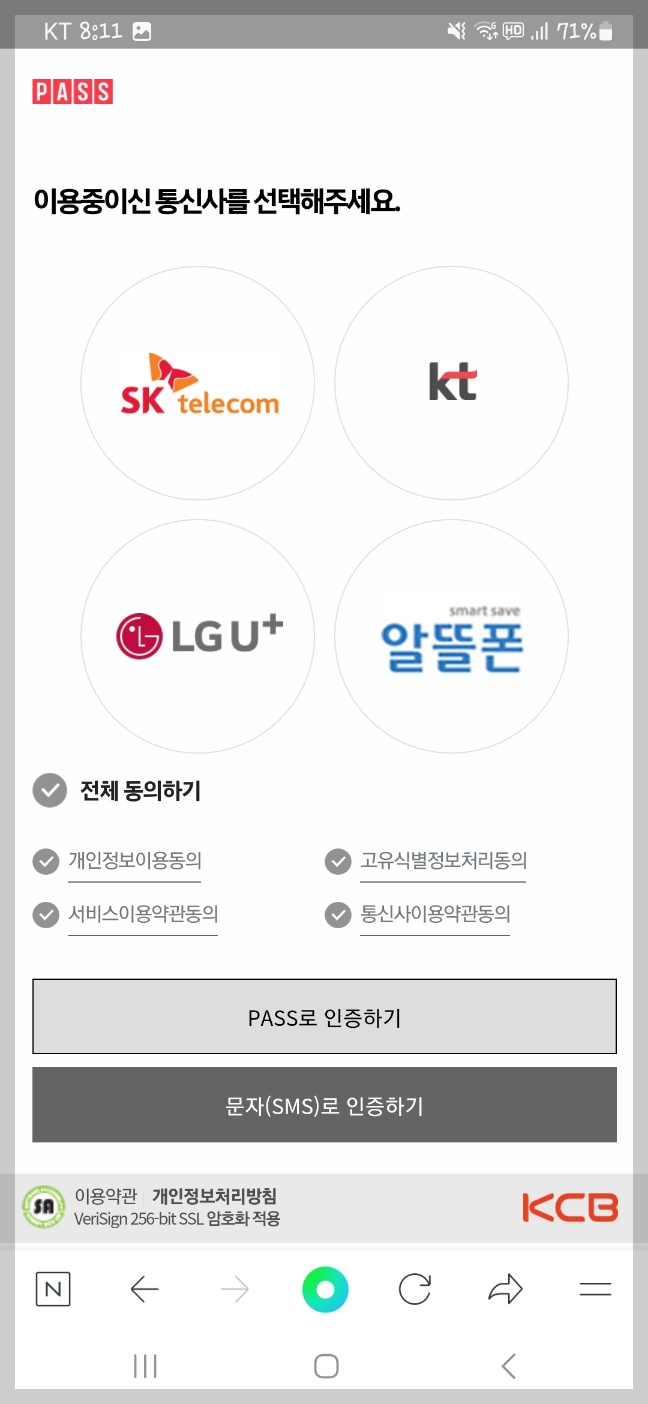 통신사를 선택하고 문자(SMS)로 인증을 합니다.