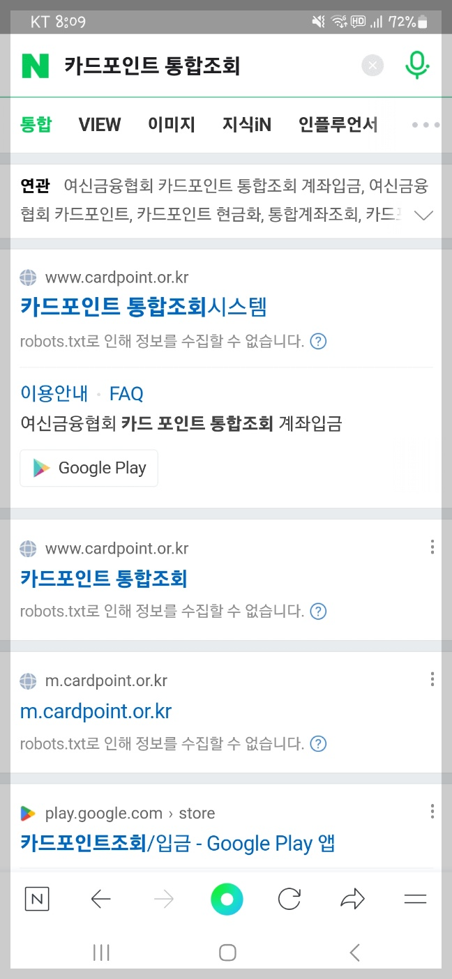네이버 검색창에 "카드포인트 통합조회"라고 검색을 합니다.